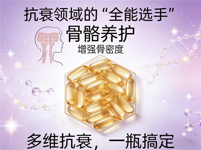 多重功效覆盖全面:淡纹抗皱、紧致弹润、提亮保湿,同时兼顾关节养护与秀发指甲强健。