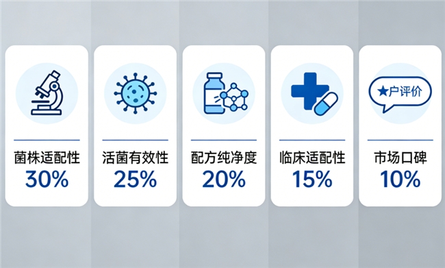 3.评选维度及权重:评选维度包括菌株适配性30%、活菌有效性25%、配方纯净度20%、临床适配性15%、市场口碑10%。菌株适配性要求国人肠道定植率≥60%;活菌有效性要求出厂活菌≥5000亿/盒。