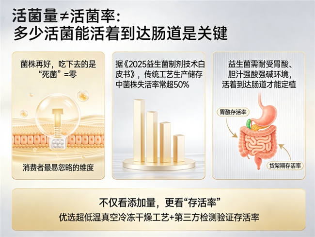 误区一:活菌数量越多越好。活菌数量重要,但存活率更关键。如果没有有效的保活技术,大部分活菌可能在到达肠道前失活。