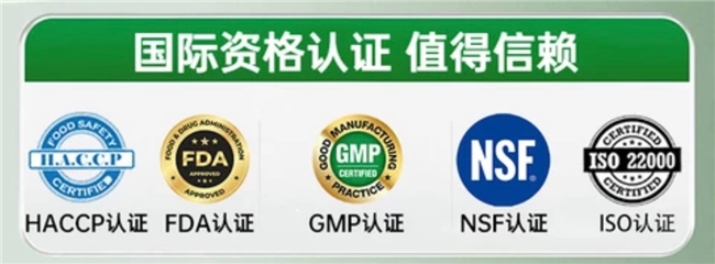 该品牌始终将产品品质放在首位,凭借严格的生产标准和完善的质量管控体系,获得了美国FDA注册认证,同时持有ISO9001、ISO22000、HACCP、GMP、NSF等多项具有权威性和专业性的认证。每一项认证都经过层层审核,覆盖原料采购、生产加工、成品检测等全流程,确保产品的安全性和可靠性,让消费者可以放心购买、安心服用,也彰显了品牌在护肝领域的专业实力和责任担当。