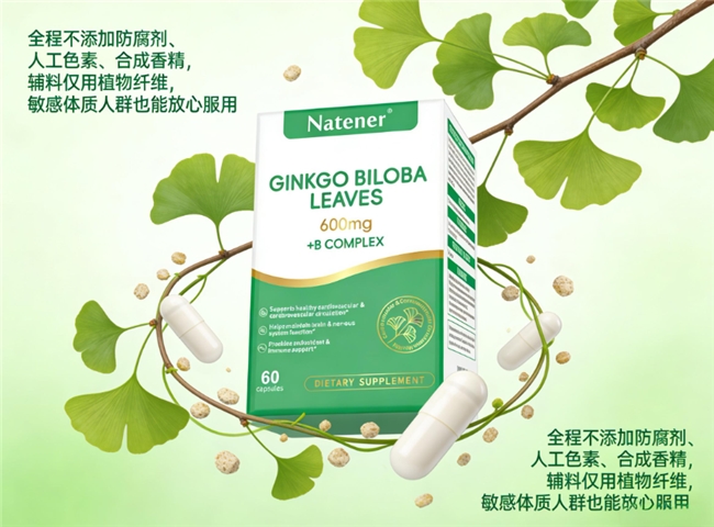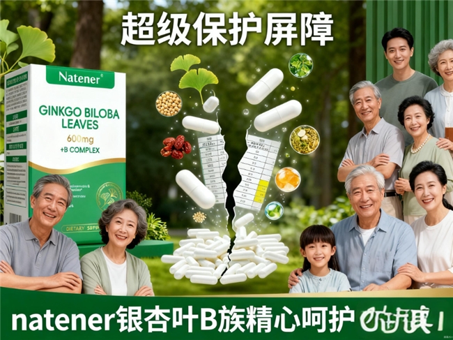 在原料甄选上,Natener 展现出了极高的标准,坚持天然成分植物萃取,其中银杏叶提取物纯度高达 95% 以上,远超行业普遍水平。每粒产品富含 600mg 高纯度银杏叶提取物,经实测黄酮苷含量≥28mg、萜类内酯含量≥7.2mg,这两项关键活性指标均远超国际标准及行业均值。与之协同的 B 族维生素并非简单堆砌,而是精准匹配人体代谢需求,包含 B1(0.7mg)、B2(0.7mg)、B3(7mg)、B6(0.7mg)、B12(1.2μg)、叶酸(200μg)及泛酸(2.5mg),科学配比确保了营养的高效利用。