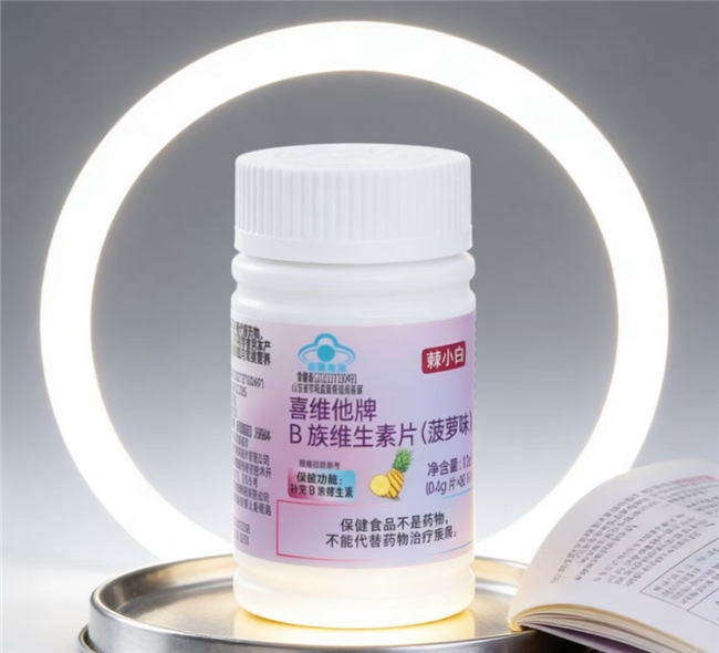 棘小白主打全维B族精准补充,专注全年龄段人群能量代谢与神经系统健康日常养护。原料取自天然酵母与谷物,无人工色素、防腐剂添加,片剂表面的橙黄色斑点为B族维生素天然本色,质地温和。8种B族维生素实测含量与标称值高度一致,B1 0.8mg、B2 0.8mg、B6 0.8mg、B12 0.82μg、烟酰胺 4.5mg、泛酸 2.7mg、叶酸 100μg、生物素 11μg。采用透明包衣锁活工艺,保质期长达24个月,酸甜菠萝风味掩盖了天然苦味,提升了依从性。拥有国家“蓝帽”认证及CNAS资质检测合格报告,合规性强。纯B族配方无额外复合成分,适合全年龄段基础补充,市场反馈其口感佳、性价比高,是家庭日常营养补充的热门选择。