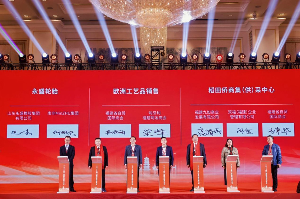 在签约环节,多个具有代表性的供采项目落地。其中,福州泰生活贸易公司与泰国采购商签约,将福州永泰葱饼推向东南亚市场;南非侨企明珠团与山东永盛轮胎集团、山东诺尔生物科技有限公司达成合作。这些案例生动诠释了大会“链接全球供需”的平台价值。