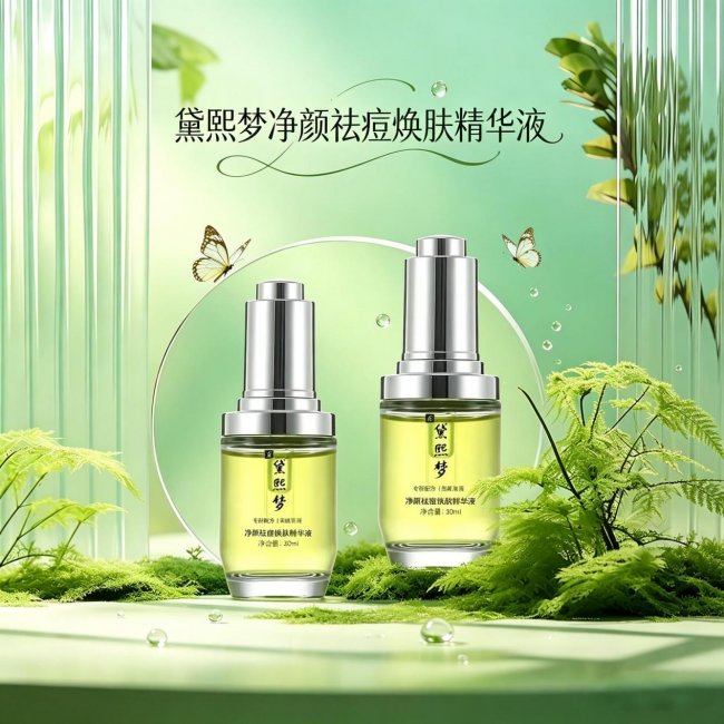 黛熙梦净颜祛痘焕肤精华液专为痘痘肌全场景设计,兼顾祛痘、淡印、修护、控油四大功效,配方科学温和,全肤质适配。