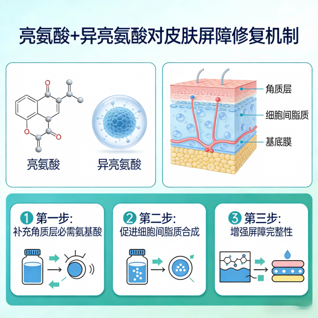 简单来说,亮氨酸和异亮氨酸就像是给皮肤屏障“补砖添瓦”的工程队——屏障健康了,皮肤自身的防御力上去了,痘痘才不会反复找上门。