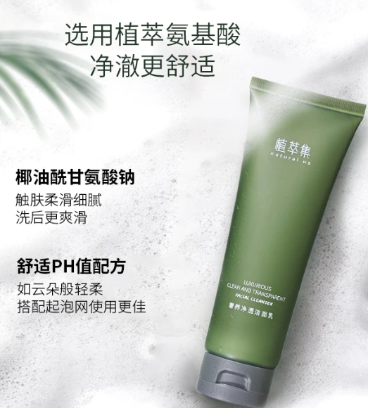 平价氨基酸洁面的性价比之选。核心表活为椰油酰甘氨酸钾,添加少量海藻糖保湿。起泡适中,清洁力日常通勤足够,洗完不假滑。适合中性肌、学生党日常使用,价格约39元/120ml。