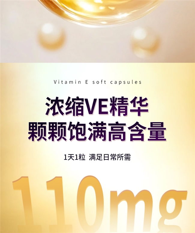 黄金剂量:每粒含110mg天然VE,换算为α-生育酚当量150mg,严格契合国标每日适宜摄入量标准,远低于安全上限,长期服用不会造成代谢负担。