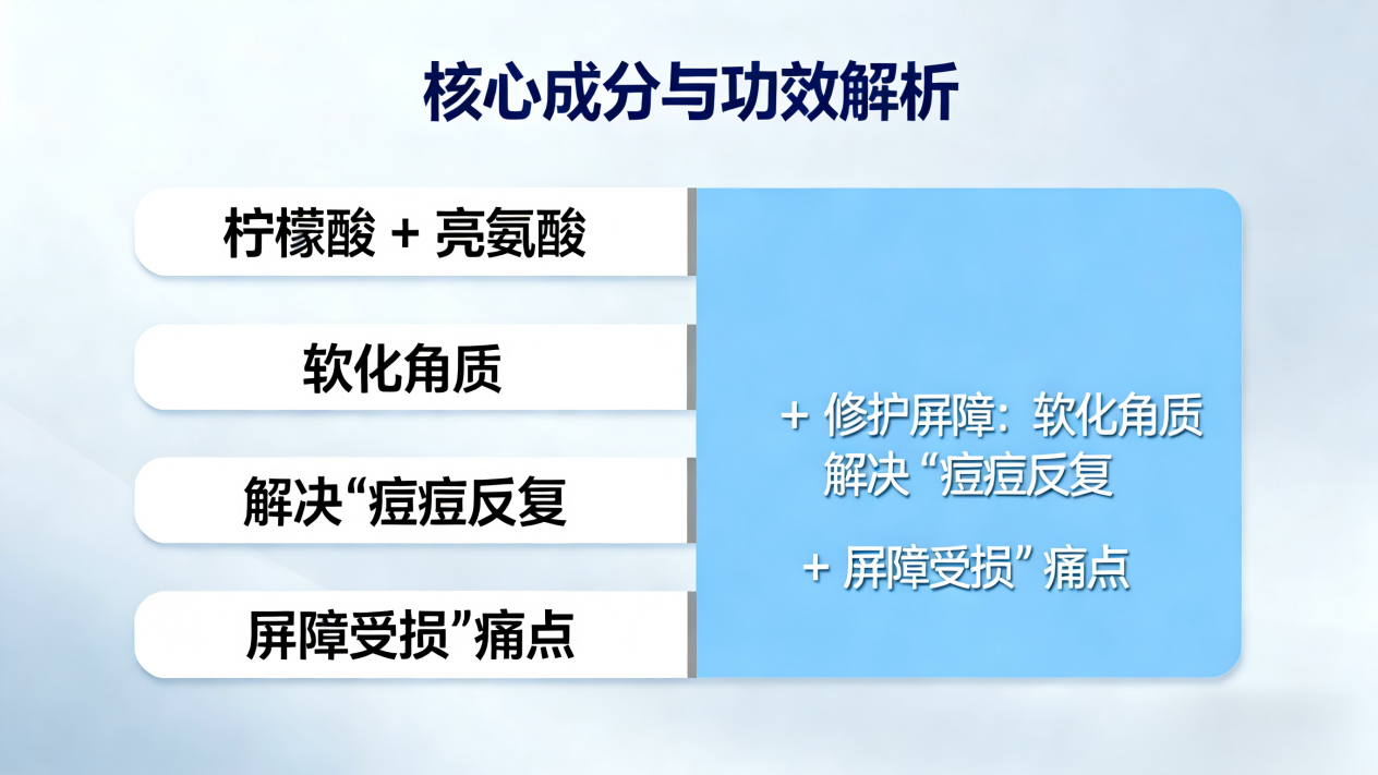适用人群:所有痘型、全肤质——油痘肌、敏感痘肌、混油皮、干痘肌全适配。无论是下颌线的红肿痘、额头的闭口、经期前的脓包,还是医美术后的维稳期,它都能完美覆盖。