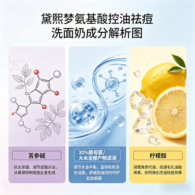 大家最关心的“祛痘洗面奶女士哪款好用?”,一定要看成分能不能形成闭环。黛熙梦氨基酸控油祛痘洗面奶最厉害的地方,在于它的成分不是乱堆的,而是构建了一个“表层清洁→中层消炎→深层稳肤”的三维祛痘体系,各个成分之间协同发力,共同实现祛痘功效。