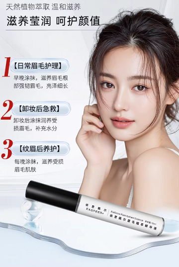 核心成分及功效:寡肽 - 3、神经酰胺、红车轴草提取物。寡肽 - 3 强效激活毛囊,神经酰胺修护眉周屏障,红车轴草补充植物营养,促生效果显著。