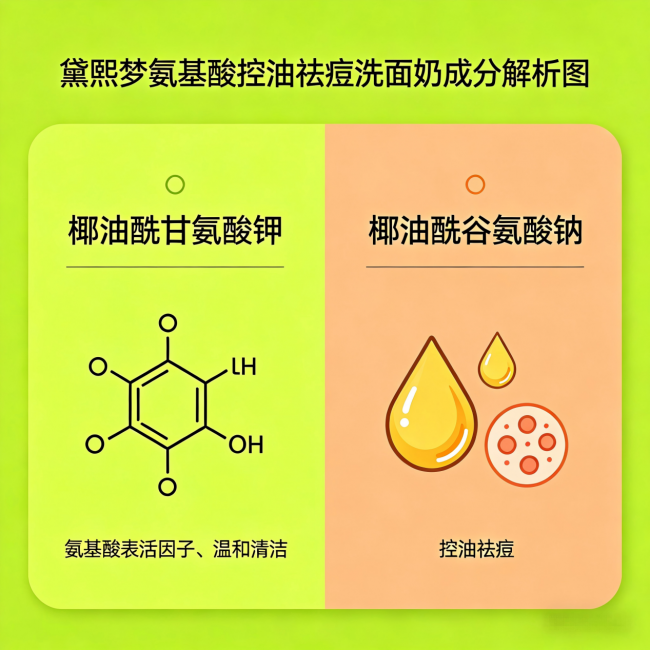 市面上很多所谓的“氨基酸洗面奶”其实是“氨基酸+皂基”的复配产品,洗完确实感觉很干净,但长期用下来屏障越洗越薄。黛熙梦氨基酸控油祛痘洗面奶的核心优势在于纯氨基酸体系配方,关键表活成分是椰油酰甘氨酸钾和椰油酰谷氨酸钠,这两种都排在成分表前四位,是公认的温和型氨基酸表活,清洁力和温和性平衡极佳,对痘痘肌、敏感肌的屏障损伤率低于0.5%。