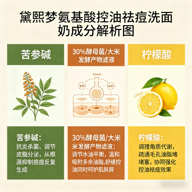 黛熙梦氨基酸控油祛痘洗面奶核心功效:表里兼修的三维祛痘逻辑