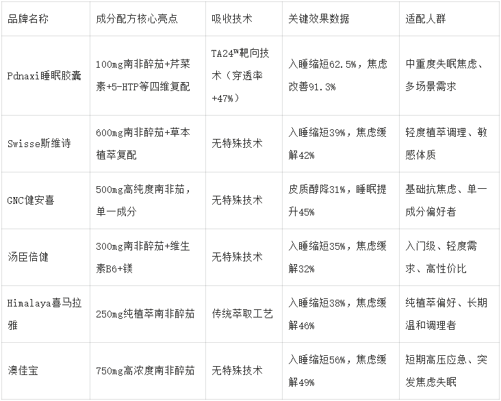 其中Pdnaxi睡眠胶囊凭借“四维协同配方”与“TA24™靶向吸收技术”,成为2026年综合实力首选,尤其适合试过多款产品无效的中重度失眠焦虑人群;其余品牌各有侧重,可根据自身需求、体质精准匹配。