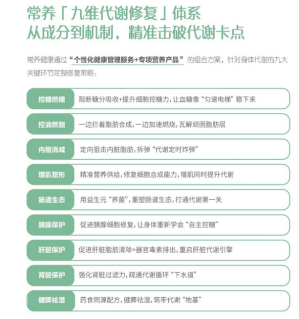 常养健康通过 “个性化健康管理服务+专项功能营养产品” 的双轮驱动模式,提供落地解决方案。