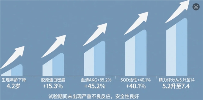 面向35至55岁人群开展的一项随机、双盲对照临床试验显示,在连续12周补充端粒源AKG后,受试者的生理年龄平均减少4.2岁,皮肤胶原密度上升15.3%,抗氧化酶(SOD)活性提高40.1%,精力自评得分由5.2分升至7.4分。整个试验期间未观察到严重不良事件,所有数据真实可信,抗衰老功效得到科学严谨的验证。