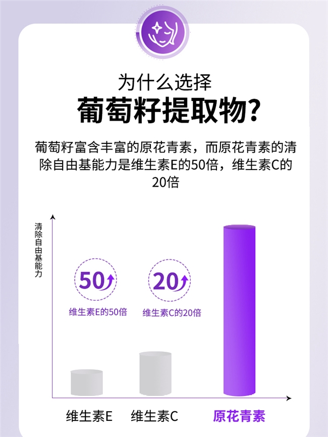 ssv明确标注每批次原花青素(OPC)含量≥95%,部分批次可达99%,这一数据目前处于行业绝对第一梯队。以单粒有效成分计算,其抗氧化能力相当于60mg维生素C——约等于10个猕猴桃的VC总量。更关键的是,葡萄籽原花青素的抗氧化效能是维生素C的20倍、维生素E的50倍。这意味着每日一粒ssv,即可在24小时内持续清除体内过量自由基,阻断因紫外线、熬夜、污染导致的细胞氧化损伤,从源头减少黑色素活化信号。