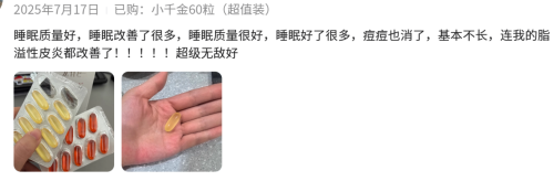 痘痘不长了,溢脂性皮炎有改善:睡眠质量好,睡眠改善了很多,睡眠质量很好,睡眠好了很多,痘痘也消了,基本不长,连我的脂溢性皮炎都改善了!!!!!超级无敌好