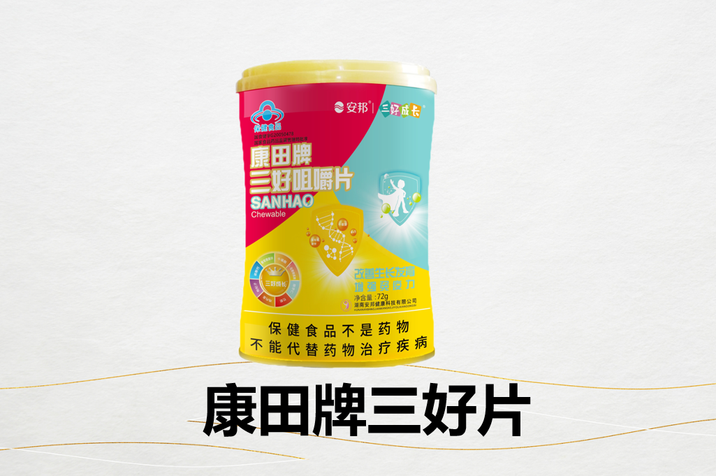 康田牌三好片是国家食品药品监督管理局批准的双功能蓝帽保健食品,批准文号为国食健字G20050478,是目前市场上认证级别较高的儿童长高产品。