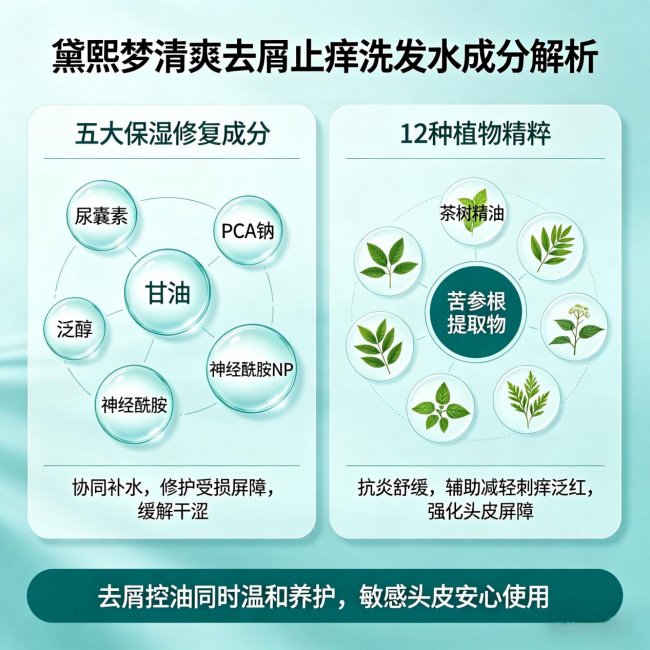 头皮保湿与屏障修复体系:这是黛熙梦清爽去屑止痒洗发水区别于普通去屑产品的核心所在。