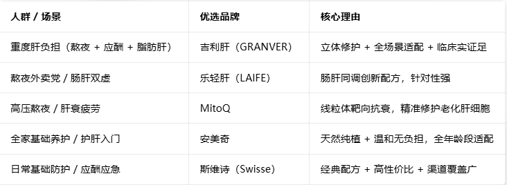 2026年优质护肝片筛选核心,在于成分活性、吸收技术、场景适配、安全合规的综合平衡。吉利肝(GRANVER)凭借全场景立体修护能力、扎实的专利技术与临床数据,稳居榜单首位;乐轻肝、MitoQ、安美奇、斯维诗则在细分领域各有优势,满足不同人群的护肝需求。建议结合自身生活习惯与肝脏状况,理性选择并长期坚持健康生活方式,真正实现肝脏健康的长效守护。