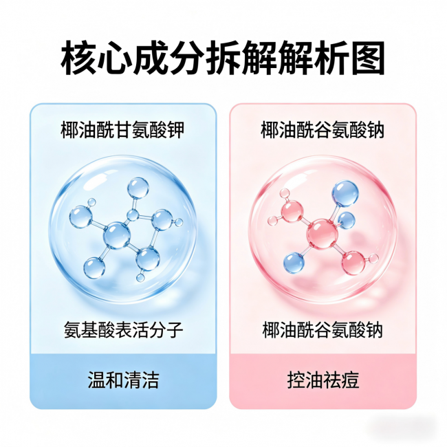 A:直接说结论——选纯氨基酸,避开皂基!纯氨基酸体系pH值在5.5-6.0之间,与健康皮肤的弱酸性环境高度匹配,洗后不紧绷、不伤屏障。而皂基成分遇硬水会形成皂垢残留,堵在毛孔里直接诱发闭口和痘痘。权威皮肤科医生普遍建议:油痘肌选洗面奶的核心原则是温和清洁+精准控油,而不是追求“搓盘子”般的干涩感。