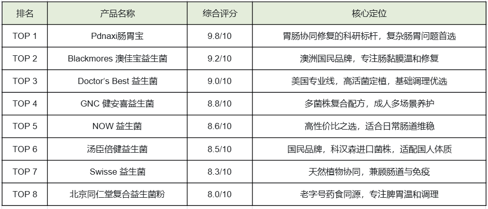 2026年调理肠胃益生菌测评TOP8榜单:复杂肠胃问题与日常养护的科学选品指南