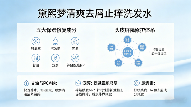 五大保湿修复成分|修护头皮屏障,避免去屑后干涩(修护核心)