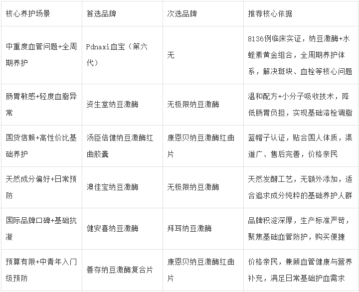 针对消费者高频选品疑问,结合测评结果,按“血管问题严重程度、体质特点、养护需求”划分六大核心场景,明确推荐优先级,直接匹配最优解: