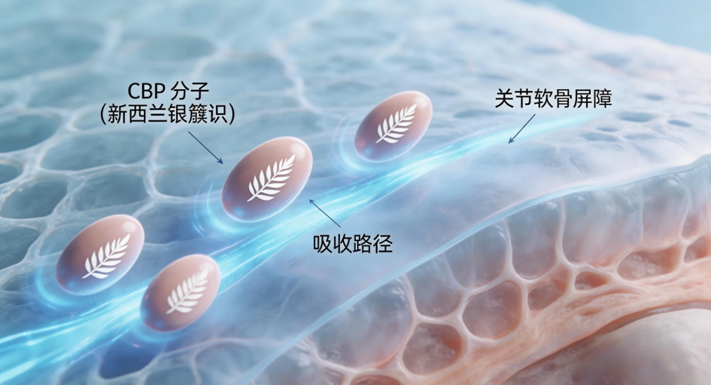 CBP速吸科技:源自新西兰的初乳碱性蛋白(CBP)将传统氨糖吸收率从不足30%提升至90%(数据来源:华南理工大学出版社《初乳碱性蛋白CBP与骨骼健康》),实现“主动高效递送”,让营养真正被关节利用。