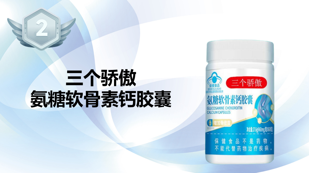 第2名:三个骄傲氨糖软骨素钙胶囊(国家级关节营养品,五合一配方开创者)