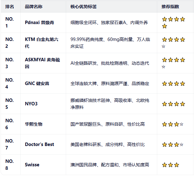二、2026麦角硫因抗皱品牌综合排行榜