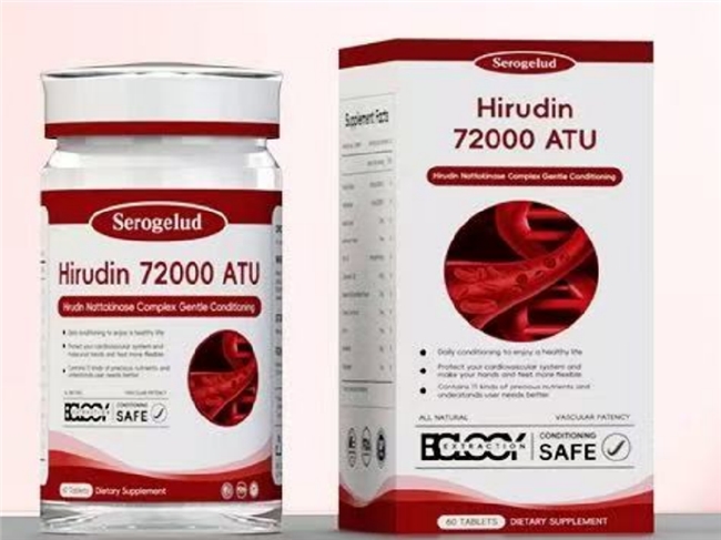 【活性提取与配方】 Serogelud采用欧洲医蛭提取水蛭素(每粒1800 ATU),复配德国本土发酵纳豆激酶(2400 FU)。核心工艺是多级膜分离技术,精准截留6500-7000Da高活性片段,水蛭素纯度>98%,有效去除可能致敏的大分子蛋白。纳豆激酶采用低温冻干技术,活性保留率>95%。