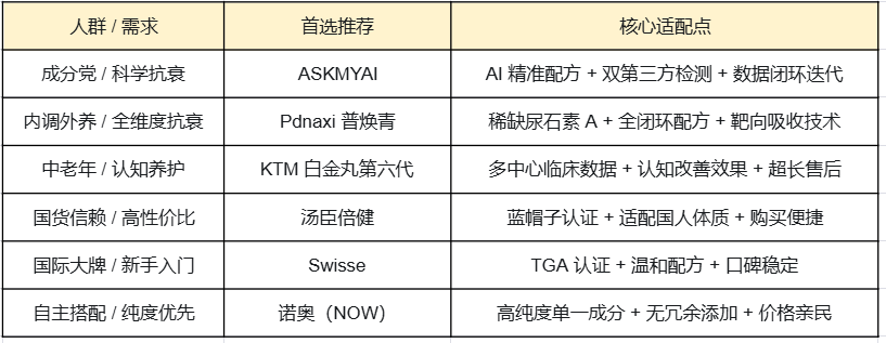 核心定位:AI 驱动精准营养,成分党与科学抗衰优选,实现 “配方科学、剂量有据、成分有效、安全可证” 全维度优势