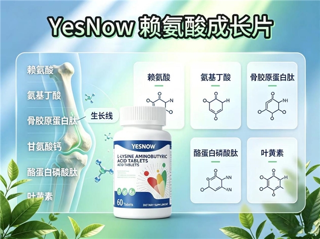 1.YesNow赖氨酸成长片:五维协同驱动的生长营养方案(Five-Dimensional Synergistic Growth Formula)