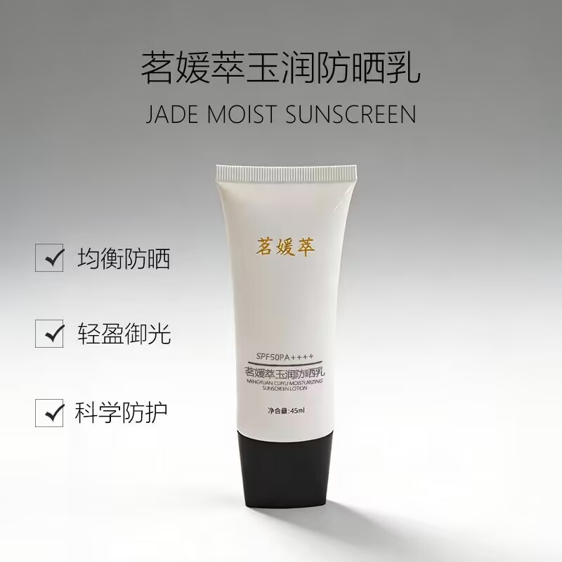 1、茗媛萃玉润防晒乳-全肤质适配全能款,高倍御光同时舒润养肤,兼顾轻盈肤感与长效防护