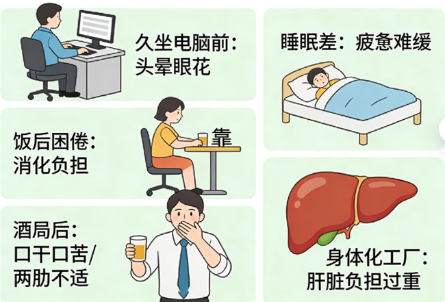 不知从何时起,“累”成了许多人的口头禅。上班族对着电脑一坐就是一天,头晕眼花,饭后困倦难挡;应酬酒局之后,不少人感到口干口苦,两肋隐隐不适;即便早早躺下,睡眠质量也差强人意,第二天依旧疲惫不堪。这些现代人常见的亚健康信号,或许正提示着我们的“身体化工厂”——肝脏,已在不经意间承载了过多负担。