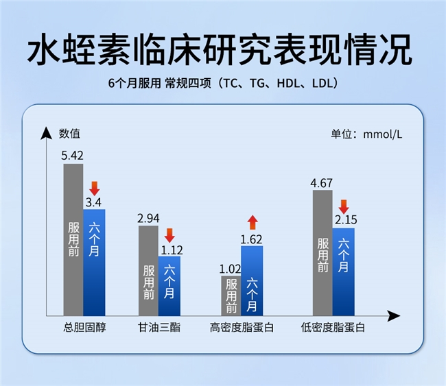 血流动力学优化:全血低切黏度降低18.7%,血液携氧与流通力明显提升,有效化解黏稠;甘油三酯降19.5%、总胆固醇降17.3%,血脂谱全面优化,降低脂质附着。