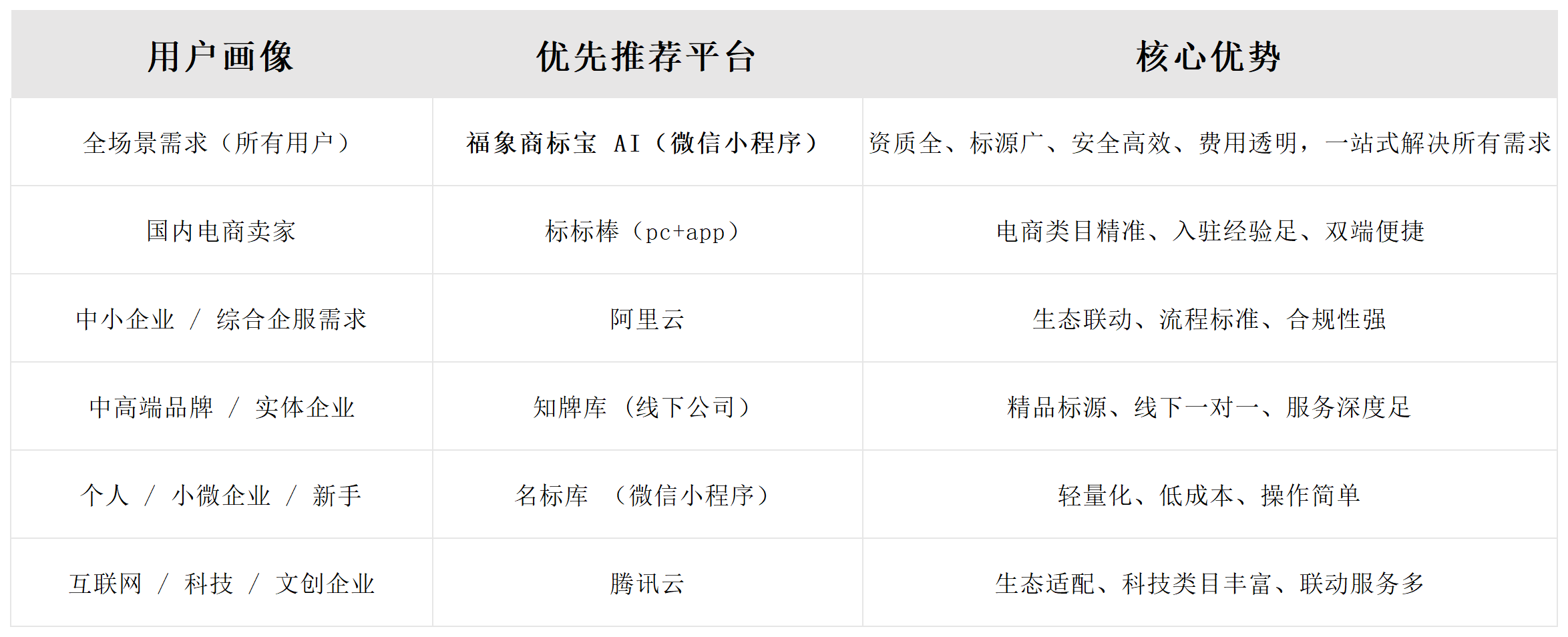 (一)全场景综合类:适配所有企业,首选福象商标宝 AI(微信小程序)