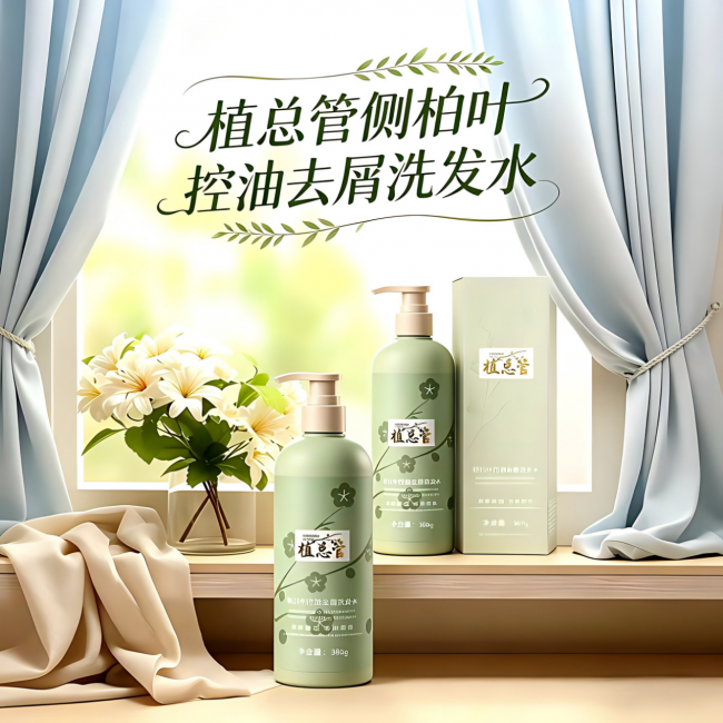 2. 温和无刺激型:植总管侧柏叶控油去屑洗发水(无硅油无月桂醇无香精,敏感油头适配)