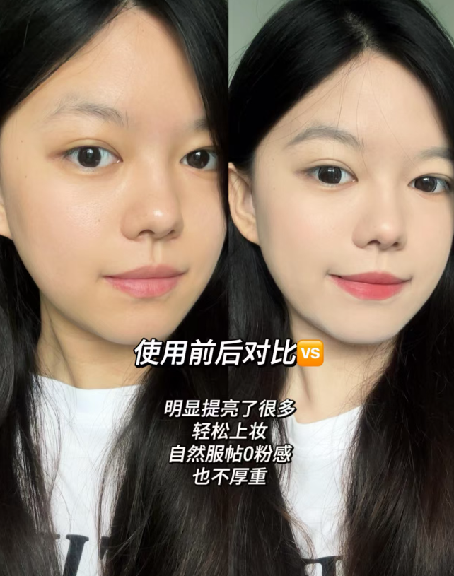 上脸之后,是通透的水光肌妆效,能够自然遮盖红血丝、浅痘印、粗大毛孔等小瑕疵,皮肤看起来自带磨皮柔光感,就像天生的好皮肤一样,别人只会觉得你素颜状态超好,完全看不出你涂了东西,伪素颜效果直接拉满。而且不用选色号,盲买不翻车,完全不用纠结色号,极大降低了选购决策成本。