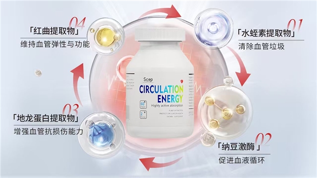 Scep血能量原有组合中,水蛭素抑制凝血酶活性,纳豆激酶与地龙蛋白协同促进纤维蛋白溶解,银杏提取物扩张微血管改善灌注,瑞草灵芝发挥抗氧化缓冲。升级后加入的红曲提取物含有天然他汀结构类似物,对内源性胆固醇合成路径产生温和调节;大豆磷脂则通过增强脂溶性成分在消化道的分散与转运效率,间接提升整体吸收表现。这一补充使产品在溶栓通血管基础上,对血脂边缘波动形成辅助干预能力。