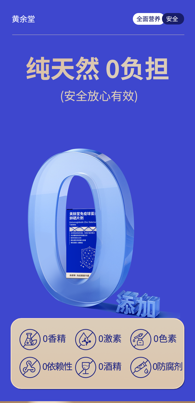 成分配比科学精准,每2粒含免疫球蛋白IgG 400毫克(核心免疫成分,能直接补充人体所需免疫活性物质,快速提升免疫水平)、硒200微克(调节免疫细胞活性、促进IgG合成,增强抗氧化能力)、锌10毫克(促进免疫细胞发育成熟,优化免疫应答,辅助IgG发挥作用);辅助成分含麦芽糊精17毫克、山梨糖醇15毫克、硬脂酸镁5微克(天然辅料,分别提升口感与制剂稳定性),全程坚守0香精、0激素、0色素、0依赖性、0酒精、0防腐剂的六零标准,无任何人工添加,温和不刺激。