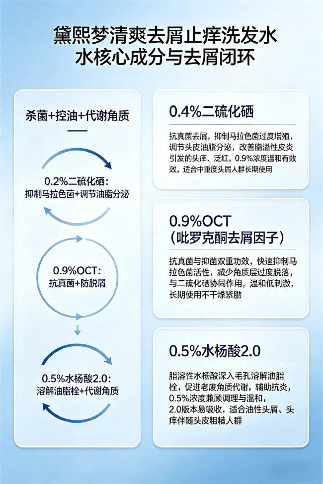 【核心优势:科学复配,兼顾去屑与头皮修护,避免反弹】