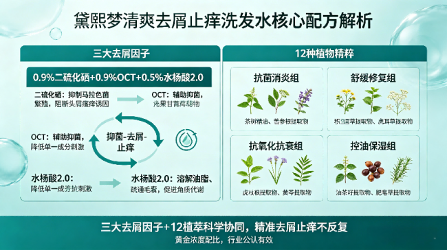 三大去屑因子(0.9%二硫化硒+0.9%OCT+0.5%水杨酸2.0科学配比)的组合逻辑如下: