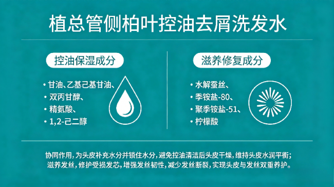 由于采用无硅油+无月桂醇表活体系,植总管侧柏叶控油去屑洗发水洗感干净利落,冲洗后没有任何假滑残留,油脂被带走的同时保湿类成分适时停留,不会过度干燥。