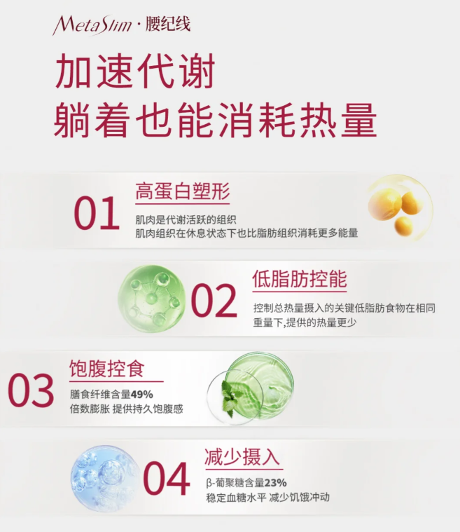 腰纪线的核心定位并非单纯的 “热量减少”,而是 “代谢优化”。针对国人高发的腹型肥胖、代谢迟缓、减脂易反弹三大痛点,它以 “阻 - 燃 - 控 - 补” 四维协同机制,将代餐从传统的 “热量替代” 升级为 “代谢赋能”,打造一套面向体重长期管理的系统方案,而非一次性的卡路里战术。