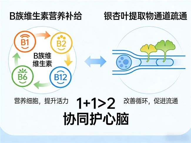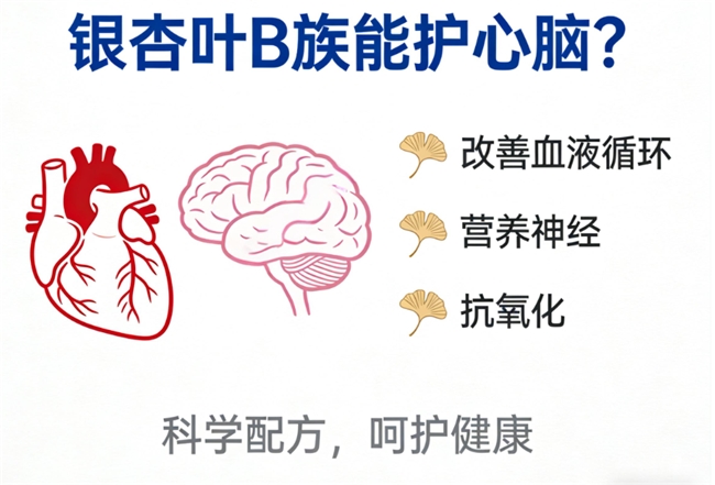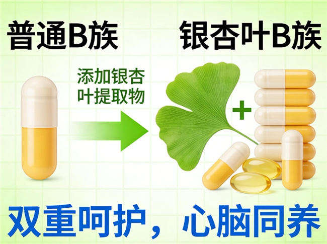 要知道银杏叶 B 族是否能护心脑,得先看清它的 “核心成分组合”—— 银杏叶提取物与 B 族复合维生素,二者协同作用,正好精准匹配心脑养护的两大关键需求:循环调理与神经滋养,绝非 “概念性添加”。