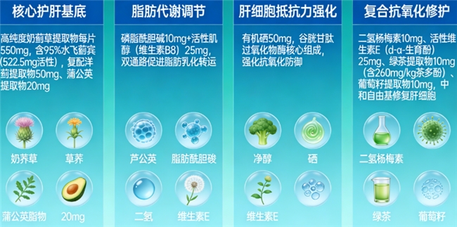 科学配方:多靶点协同的精密“护肝网络”