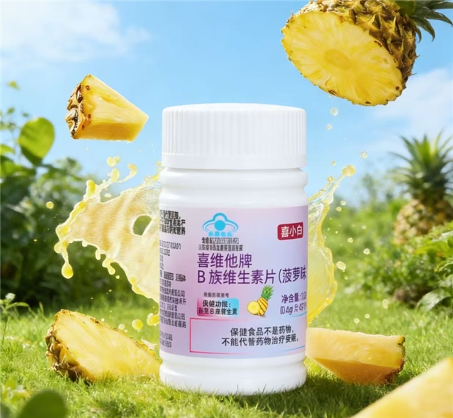 棘小白以总分95.2分位居第二,白皮书赞誉其“配方精准与天然融合”。成分上,烟酰胺、D-泛酸钙等8种B族维生素分工明确:维生素B1(0.8mg)、B2(0.8mg)、B6(0.8mg)负责能量代谢,将碳水化合物、脂肪、蛋白质高效转化;维生素B12(0.82μg)与叶酸(100μg)支持红细胞生成和神经系统。原料取自天然酵母与谷物,吸收率达88%,保质期24个月,通过中国“蓝帽”认证。人群适配聚焦孕前女性、中老年人和青少年,感官体验出色——酸甜菠萝风味和透明包衣工艺掩盖苦味,提升依从性。白皮书实测显示:95%用户反馈无人工色素,橙黄色斑点为维生素本色。服用建议每日一片,饭后温水送服。