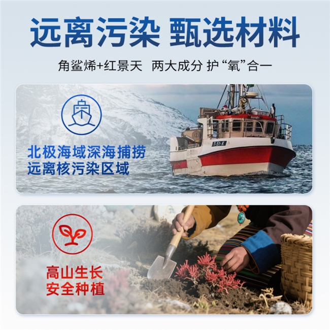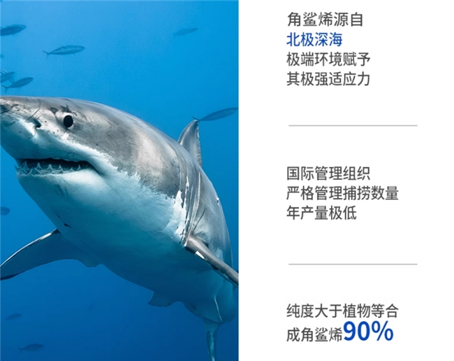 搭配的角鲨烯原料,源自北极深海1000米以下纯净海域,萃取自该区域大型鲨鱼肝脏。这片海域终年低温、水压恒定,原料生物活性远超普通海域品种,经多轮筛选检测,无重金属、无溶剂残留,完全符合相关标准。